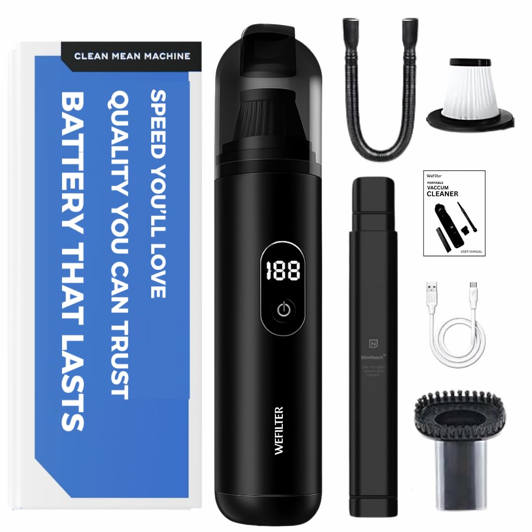 The WeFilter Portable Vacuum Cleaner delivers powerful suction in a compact, cordless design. Built for car interiors and quick home cleanups, it combines strong performance, versatile attachments, and easy portability.