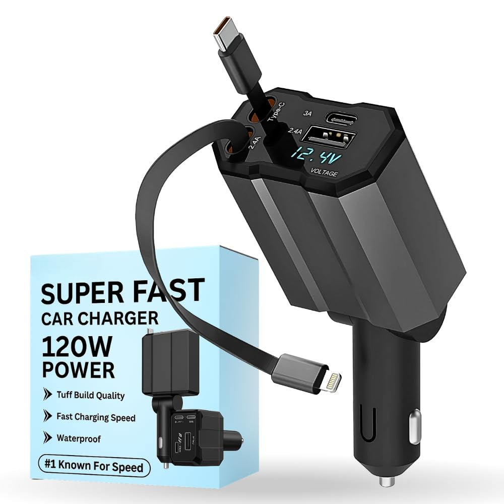 Yes! Our dual car charger supports up to 120W fast charging with both Type-C and Lightning connections for simultaneous device charging.